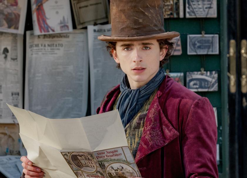 It’s an “origins” story, standard now for all manner of film character, showing the sunnier side of Roald Dahl’s eccentric chocolatier, and how his magical chocolate factory came into being. This Wonka (Timothée Chalamet) is more elfin than goblin, a lovable chap with looks to set teenage girls swooning. It has a love story of a kind in it, but not the type that sets young teeth a-grinding. It’s essentially a comedy, with Britain’s sitcom finest popping up like wack-a-mole contestants for a few seconds each, before disappearing into the mixed bag of bonbons the film is offering.