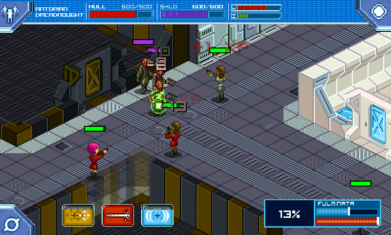 This focus on combat is a problem because for the most part Star Command's combat system is unbearably tedious. Ship-to-ship battles rely on your weapons laboriously powering up and generating the necessary ammo before you can fire, resetting the counters and having to build up from scratch again. The same mechanic is used to generate "dodge" tokens (with your dodge room, of course) that give you the power to nullify attacks if you hit the Dodge button at the right moment.