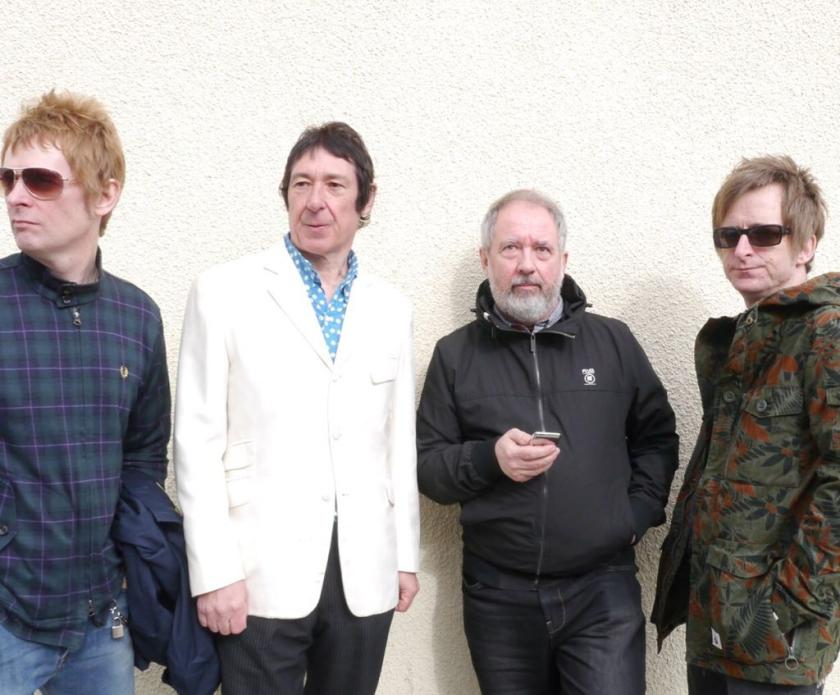 On drums and bass are relative newbies Danny Farrant and Chris Remington, dressed in black shirts like Shelley, with a Buzzcocks backdrop picturing all four as Banksy-style brick wall graffiti, taken from the cover of new album The Way.