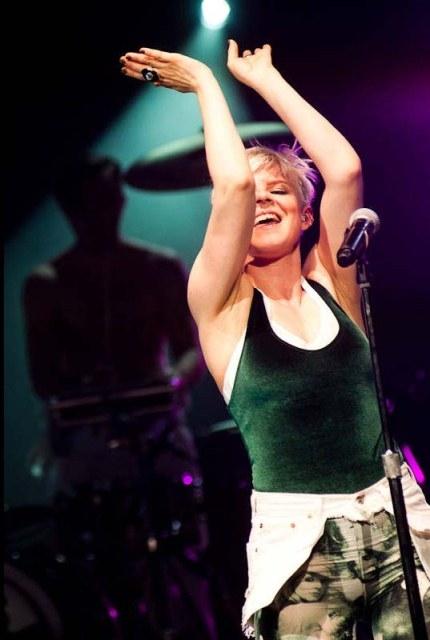 Although she says she has a throat infection – probably the reason for the single-song encore (“With Every Heartbeat”) – she's constantly throwing martial arts shapes and flinging herself side to side as though she’s experiencing an alien attack on the bridge of the Starship Enterprise. Bouncing on her three-inch rubber-soled platforms, she's relentless. Despite the footwear, she’s not the amazon she seems in her videos. She’s little. But she fills the whole stage, hurtling between the two keyboard players that flank her. Two drummers are at the back. No guitars.