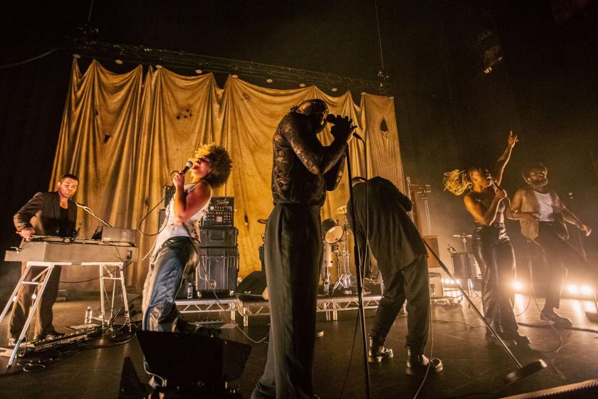 Listen to the albums though and you’ll get it. See Young Fathers live and you’ll realise why this is one of the most exciting bands making music right now not just in Scotland, nor even the UK, but internationally. This is a group who are always creating something new. Touring their new album Heavy Heavy, the trio – Alloysious Massaquoi, Kayus Bankole and Graham "G" Hastings – were joined by a crack team of musicians in their touring band, including two fabulously powerful backing singers, as well as singer and multi-instrumentalist Callum Easter, who’s also supported the band for several of their shows. The sound they created was vigorous yet soulful, punchy yet light in what was a sparklingly theatrical performance. With nothing but a torn and (artfully) stained white sheet as a backdrop juxtaposed with a dazzling lighting rig, they demonstrated visually as well as aurally that they’re a band who can’t be pigeon-holed nor pinned down.