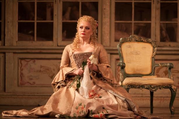 There’s little wrong with designer Tanya McCallin’s set-up, traditional and 18th century though it all very earnestly is. It’s all neatly tailored to allowing this smooth-as-clockwork Rossini farce to unravel with most efficiency and least fuss. There’s little wrong, superficially, with the conceptual shaping either. The merry-go-round of Figaro and Count Almaviva’s attempts to woo Rosina and then steal her from her guardian Doctor Bartolo is inflected with a moral bankruptcy in this revival that reveals the angrier political concerns of the original Beaumarchais play.