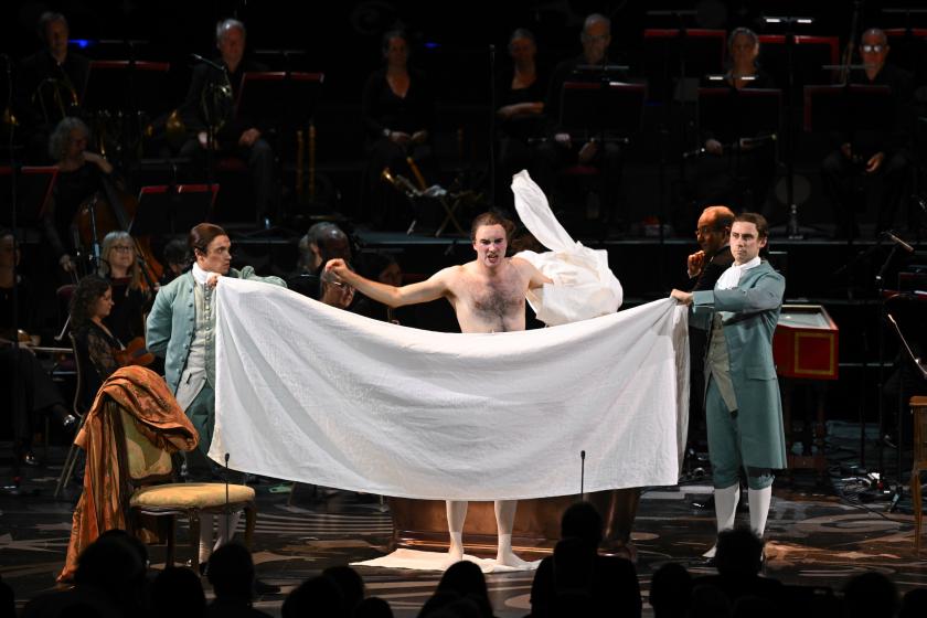 From the trio of old-timers – Alessandro Corbelli’s Bartolo, Robert Forrest’s Basilio, Madeleine Shaw’s Marcellina – we could appreciate sturdy character sketches, even if Corbelli's Bartolo overdid his orthopaedic challenges a bit. And Elisabeth Boudreault as Barbarina made an outsize contribution, haunting and poignant, with her astonishing minor-key lament for a lost pin.