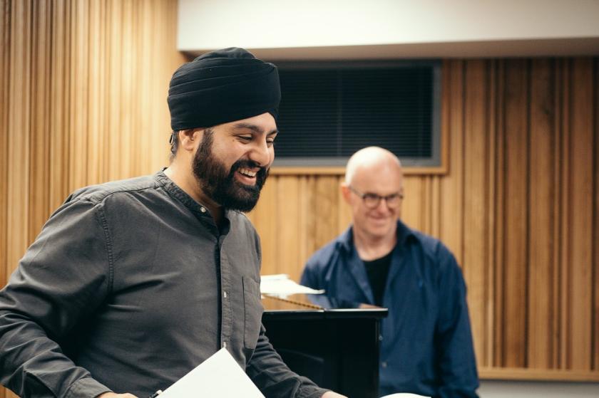 States in India are like countries in Europe. Each region has its own musical identity so there is a lot of diversity even within the umbrella term ‘Indian classical musicians’. Orpheus features people from, for example, the Bengali tradition, from Punjab, from southern Tamil Nadu, each with their own culture, language and folk music (pictured below: Krpal Singh Panesar with Jasdeep Singh Degun).. Every musician brings to the table a whole breadth of knowledge specific to their region which makes for a fascinating cultural encounter. Rehearsals for Opera North's 'Orpheus'What has also been an incredibly exciting aspect of working with each other has been the opportunity to go back to the basics of what makes music happen. Orpheus uses the power of music to do the impossible – which is what putting on an opera can sometimes feel like! It has been so refreshing to have the opportunity to strip away so many of the usual things that we encompass ourselves with when we create opera for the stage. Combining the different sound worlds, the different beliefs and the different approaches has been so inspiring. Regardless of our previous experience, each one of us has been working out of our comfort zone. We have all had occasions when we have needed to ask someone else how certain things work, and that process in itself has been fascinating. Every single artist involved will have learned so much by the end of this project.