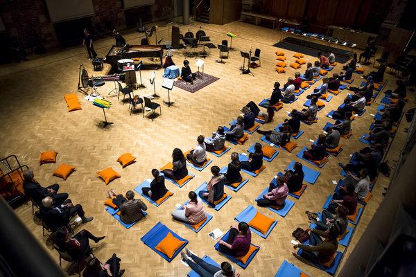 Hind’s score, what there is of it, consists of a series of attractive musical episodes for eight-piece ensemble. Shapes, textures and moods are paramount, taking it in turns to dominate each sequence of repetition. Instrumental colours are layered gradually up and down, carrying the listeners from sleep to waking or activity to calm, as needed. Rhythmic complexity keeps the ear alert, distancing this music from the Max Richter score an audience at the Wellcome Collection will be sleeping to tomorrow night. Lixenberg is quietly commanding, ensuring her mindful beginners never stray too far from the business of stillness. Yet still it doesn’t quite add up to an opera.