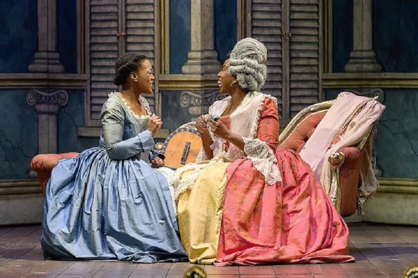 That makes an appropriate setting for a cast that’s been chosen for stage presence and ensemble rapport rather than megawatt voices. This was Figaro as a chamber piece, without a chorus but with a full orchestra which, under Christopher Stark, played with style and warmth at tempos that made the drama glow rather than fizz. McIntyre’s direction, too, was leisurely. In Acts One and Two we saw rather a lot of characters standing about and metaphorically twiddling their thumbs (the Countess - played by Nadine Benjamin, pictured above - simply positioned herself behind her chaise longue and delivered "Porgi amor" straight at the audience), though things seemed to pull more sharply into focus after the interval.