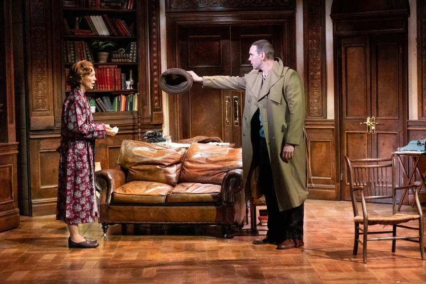 Around the matte Callaghan, though, there's a fine brown wood and old leather Edwardian library and ideal Fair Isle and wool pleating by Julie Godfrey, there's an ensemble particularly strong on the female side, and an intriguing darker psychological edge pointing to the underwritten role of Trenting's 14-year-old son added by his silent drawing of curtains across scenes, or appearing spotlit in snatched dream sequences of unspecifically disturbing sound and light scapes by David Gregory and Nick Richings. The part is effectively played by Louis Holland (pictured above right, with Honeysuckle Weeks), much too old, really, but it's an inverse parallel, if you like, to Trenting's supposed deception into believing a 14-year-old girl was 10 years older.