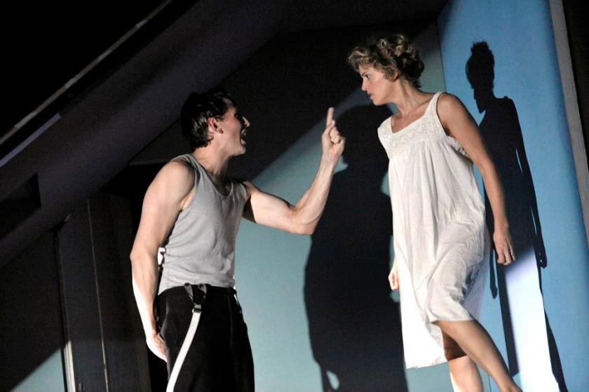 You have to put a great deal on stage here and the Lyric’s stage is dauntingly narrow and high, but the play’s physicality and ideas are well drawn in Sean Holmes’ production. Ian MacNeil designs a stark skeleton, a square of fiery sky, little shifting boxes of cramped rooms, great spaces over the roof, the sketchiness given emotional heat and impulse by some fine lighting by James Farncombe and atmospheric sound by Christopher Shutt.