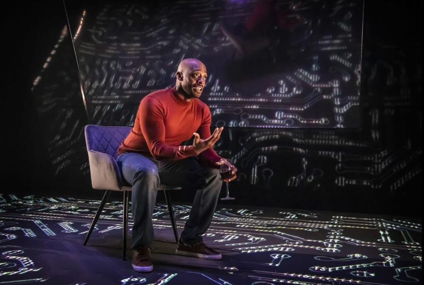 Disruption, which is receiving its world premiere also in North London at Finsbury’s Park Theatre, is yet another slick tech show. Written by Andrew Stein and directed by Hersh Ellis, Disruption tackles the seemingly unstoppable rise of AI. Tech entrepreneur Nick (charismatically portrayed by Oliver Alvin-Wilson) has cashed out of Silicon Valley and together with his much- younger female business partner Raven (Sasha Desouza-Willock) gone on to create an algorithmic machine that harvests data to such an overwhelming extent that it can create “curated coincidence” among its users, impacting their life choices to an unprecedented degree.