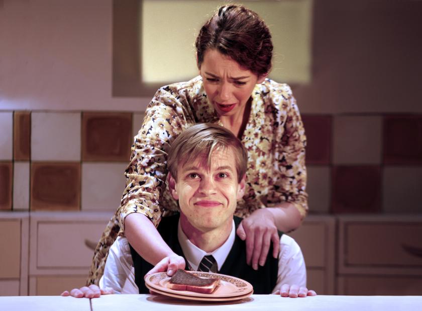 Sam Newton is magnificent – and rarely off stage – as a wide-eyed, thoughtful Nigel, pitch-perfect in his shifting emotions, with sly comic timing and impressive dance skills, too. Indeed, a couple of set-piece movement scenes from Riordan, who choreographs as well as directing, push the story along beautifully amid Libby Watson’s lovingly evocative 1960s kitchen set. Nigel’s hesitant dance atop revolving kitchen cabinets with his mother (a touchingly fragile Lizzie Muncey) to Charles Trenet’s “La mer” can’t help but bring a lump to the throat.