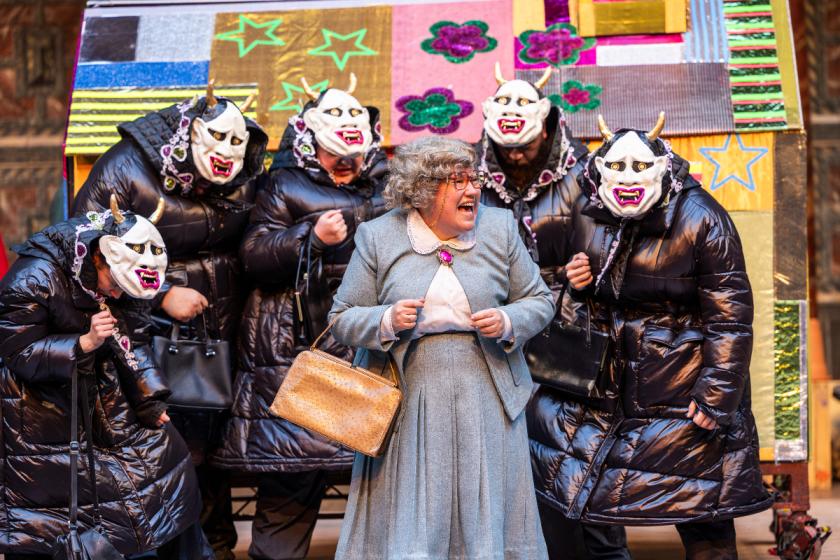 Nick Bagnall’s production is a different kind of Christmas show, with a romantic view of snow that may not settle well for the unsheltered groundlings if it’s actually snowing 50 minutes in, but the kids enjoyed the ensemble with their masks and songs and the adults can indulge in a sugar rush of their own with a little nostalgia.