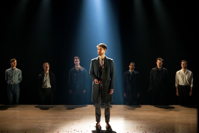 “Who lives, who dies, who tells your story?” That self-defining line actually comes not from The Inheritance but from the blockbuster Hamilton, but American dramatist Lopez appears to be channelling those defining concerns. Where Forster was looking at the mores, manners and morality of turn-of-the-twentieth century England, Lopez relocates those concerns to the present generation of gay men just too young to have witnessed the “AIDS crisis” that erupted in New York in the early-1980s. With a degree of self-consciousness that the production rarely shrugs off, these are initially represented as a class of literature students (all with perfect honed bodies) with their teacher Morgan (excellent Paul Hilton – by turn a quizzical, amused and exasperated listener, picture below right) who leads them into, literally, retelling and acting out the novel to illuminate their lives and the history they missed.