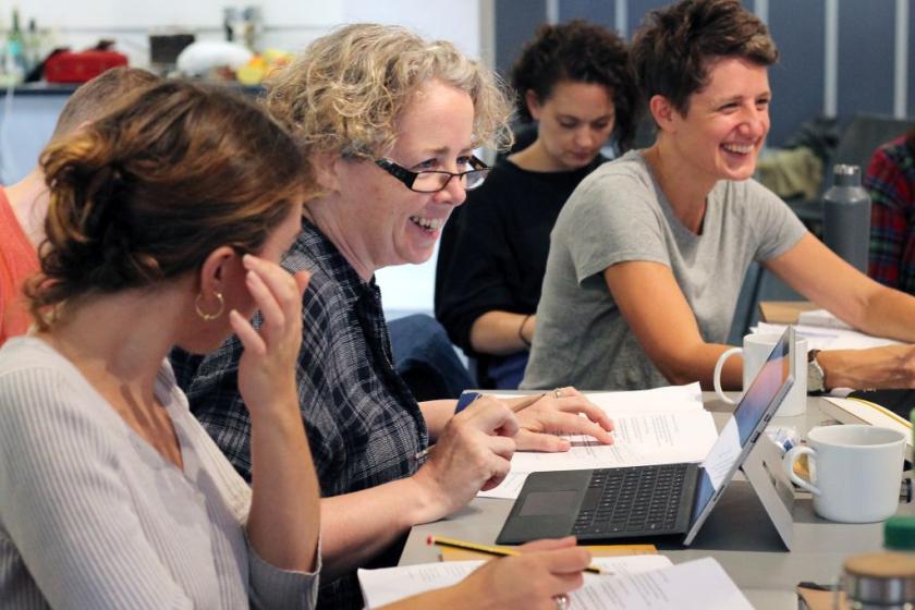 For me, Queen Margaret is the history play that has been there in plain sight for four hundred years. Shakespeare wrote more lines for her than he did for King Lear but because they are scattered across four plays, three of which are rarely done, she remains largely unknown. She ruled England for over twenty years but hardly a soul has heard of her. She is too important a role to be left unperformed or, perhaps even worse, left in tatters yet again in yet another boys-own edit of the Wars of the Roses. (Pictured above: Jade Anouka, centre, rehearsing the title role, flanked by Elizabeth Freestone and O'Hare, the play's director and writer.)