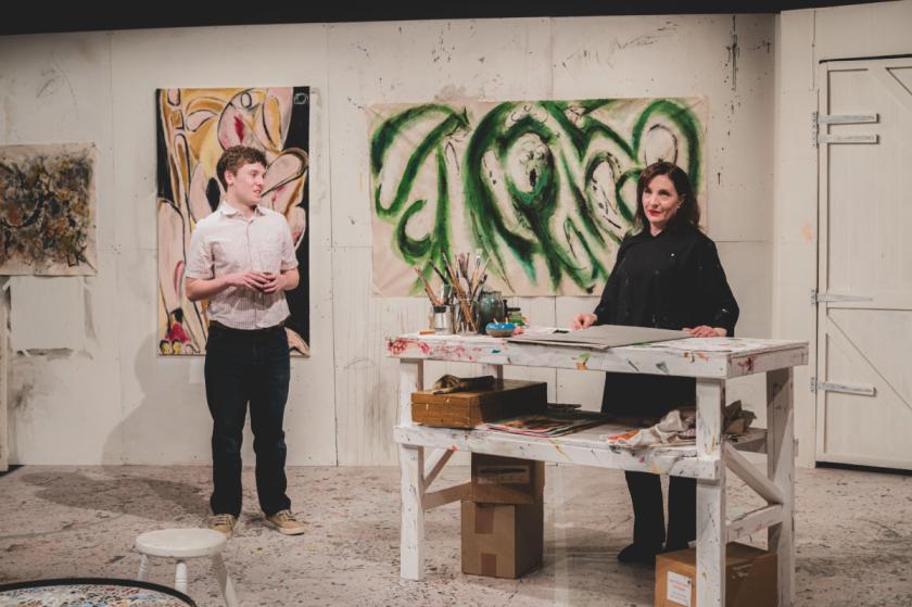 Helen Goldwyn (pictured above) gives Krasner an irascibility, an impatience with herself as much as with the inquisitive boy who wants some advice on going to art school and, as we discover, something a little more tangible too. Will Bagnall is very convincing as one of those “Yes Ma’am” American kids who hadn’t yet touched base with the 1960s counterculture beginning to rev up even in the chi-chi Hamptons, and his Hank repeatedly prompts and pricks Krasner’s ego, unmasks her bitterness and, ultimately finds her humanity.