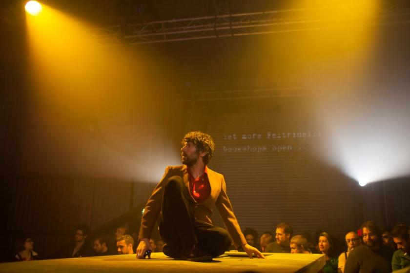 Praxis Makes Perfect, then, is a history lesson, told to good effect by playwright Tim Price, director Wils Wilson, and Neon Neon. It is the story of one of the 20th century’s most significant publishers, Giangiacomo Feltrinelli, who disobeyed the Communist Party of Russia and put out Dr Zhivago, the novel the Party felt could lose them the Cold War. He went on to publish Che Guevera, Chairman Mao and Lampedusa among many others. If you’re unfamiliar with the name, it’s because he was the one who did the championing. His life, spent in meetings and poring over manuscripts, is perhaps not action-packed. But Praxis does well to send up the eras the story passes through, to involve the audience without making them participants, and Price does an extremely good job of turning what could have been a 90-minute lecture set to music into a humorous and often camp journey through the shenanigans of the decades’ Social Democratic revolutionaries.