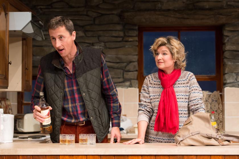 We are in a holiday cottage in deepest Wales. Keith and Briony are a teacher couple from London who have a three-year-old son, Fin. At first glance, Briony is a bundle of anxieties, fretting about being a good parent, leaving her son and worrying about her breast milk. (There’s some comic business with a breast pump.) But the comedy only really heats up when Charles and Serena, a much more upper-class, shootin’-an’-huntin’ couple (complete with shotgun) arrive. Jokes about class begin to pepper the show before Ross and Rosy, a super-organised super-couple, arrive.