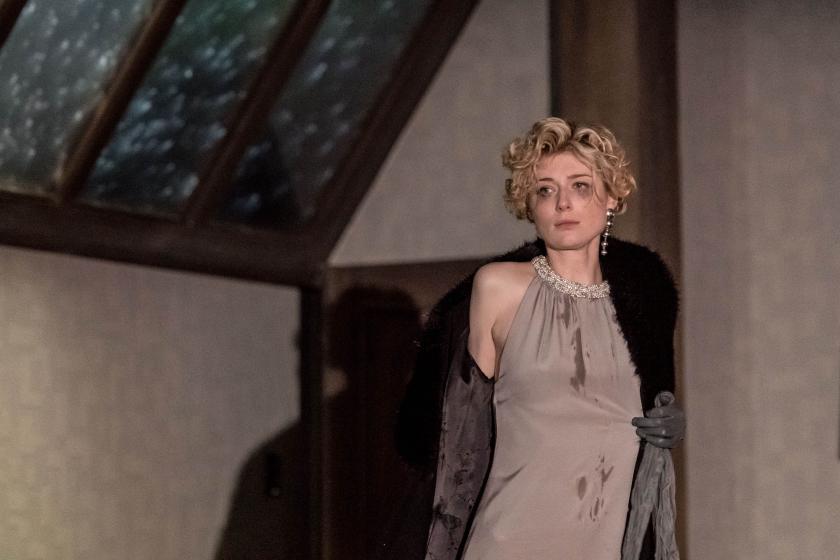 Aptly enough, Robert Icke’s superbly compelling production begins with a giant eye and has a cinematic sense of constant movement, with fade ins and fade outs, which suits Hare’s script. On Bunny Christie’s lovely, elegant sets, and helped by Paule Constable’s lighting and Tom Gibbons’s soundscape, the three main actors (pictured above) perform an elaborate game of chess: Strong’s Donald at first timid behind his glasses then almost hoarse with emotion, while Debicki’s light and flighty Mona contrasts well with Hope Davis’s calm and protective Ingrid. With each scene telling us something new, there’s a real sense of revelation as the evening progresses, so it seems ungenerous to carp that most of the dialogue is too clear, and too lacking in subtext. Better to sit back and enjoy the ride – right into Simenon’s dark nights of desire.
