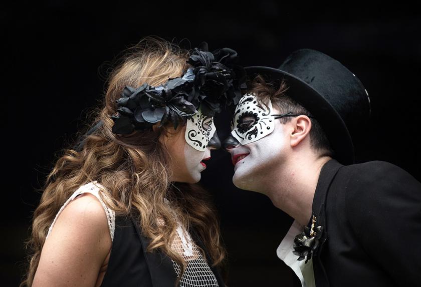 So much for the society, what about the solitude? Romeo (Edward Hogg) certainly seems on his own as he ambles in through the yard (he gets plenty of interaction with the groundlings throughout). Rake-thin, clad in black emo-style, he’s listening to headphones. The first thing that should be said is that Hogg’s delivery is glorious. He’s convincingly youthful, too – the white-face make-up must help, given that the actor is a good two decades older than his character – and has a certain callow uncertainty.Romeo and Juliet, GlobeIt's a contrast that hits home when he’s set against Juliet (Kirsty Bushell), who speaks with an experience far beyond the 14 years she has yet to turn (her intonation sometimes suggests she’s had time to try a turn on the comedy circuit, too). When we first encounter them, the Capulet women are hurrying through their solarium pre-party preparations, and there’s a winning Glaswegian comedy to Blythe Duff’s Nurse. She has a vitality that’s denied Martina Laird’s Lady Capulet, for whom waving her hands around seems a substitute for emotions she clearly doesn’t feel towards her daughter. (It’s either that or the bottle: she goes exaggeratedly dipso as the action progresses, and with some of that head-gear, you can sympathise.)