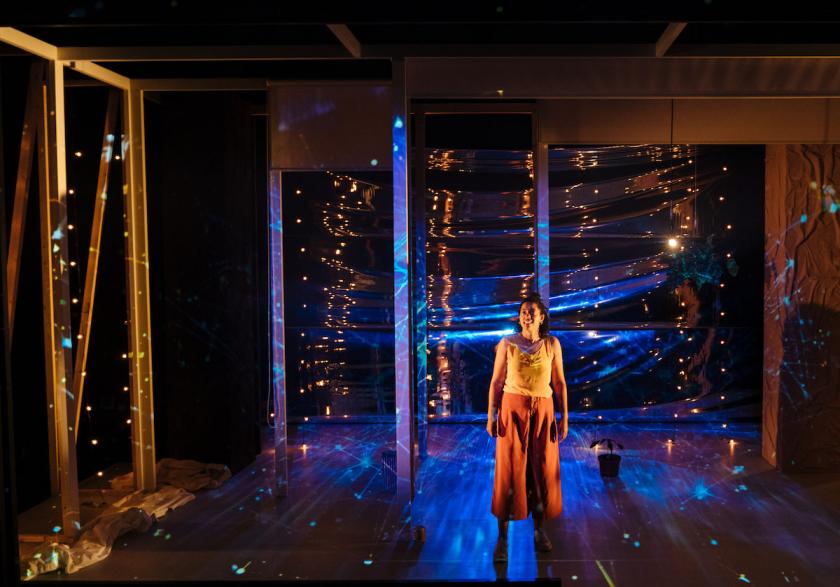 Director Elayce Ismail stages the show with a compelling sense of control and visual beauty. Along with designer Rosanna Vize, she begins the story with a picture of Myah confined in a narrow opening of the beige set, an excellent image of her loneliness and the desperate constraints of her existence. Gradually, as Wilkin lovingly performs the monologue, the set opens up while her character grows in confidence. At the same time, the narrative is punctuated by several mini-moments, each of which is an example of human connection, given a spacey excitement by Nina Dunn’s projections. Yes, connection really can turn your head.