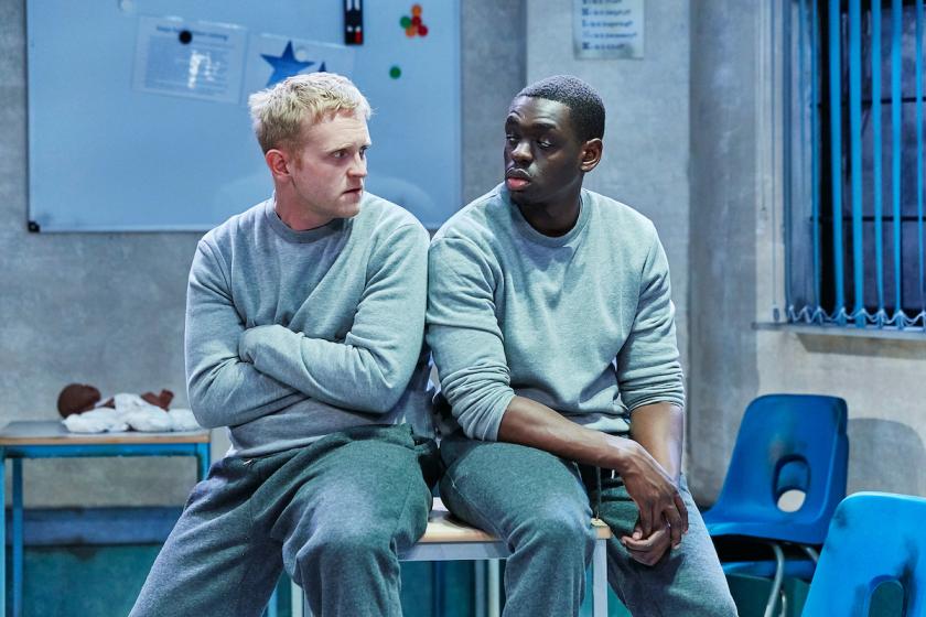 Set in a rundown classroom in a young offenders institution, the story concerns three inmates – Riyad, Cain and Jonjo – who are meant to be are learning new skills to help them cope in the outside world when, or if, they are released. Since all three are already fathers, this is a parenting class, complete with teacher Grace, and plastic dolls which can be used to practice nappy changing, or cardiopulmonary resuscitation for infants (top tip: don’t slam down too hard on the baby’s chest). This tiny space, with its whiteboard, chairs and cupboards, looks grim, but is a welcome relief to anyone who is banged up for 23 hours a day.