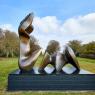 Placed in a long and artfully Arcadian vista, earthy bronze subdued against verdant grass and trees, the restless form of Henry Moore’s Two Piece Reclining Figure: Cut, 1979-81 (Main picture), both disrupts and is absorbed by its surroundings. A rampant limb rears snakelike, the energy in its writhing form arrested but not dissipated by a violently efficient cut slicing it in two. A cut this clean belongs to machinery and cold metal, not to nature, and it is the contrast with the gentle romance of Houghton Hall’s 18th century landscaping, complete with its Palladian folly, that draws out Read more ...
