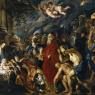 Rubens's gigantic masterpiece loudly contradicts the folkloric silent night. This typically muscular painting is deafening in its depiction of the commotion around the holy family when the Magi arrive to offer gifts to the divine king of Christian belief. The enormous entourage of camels, braying donkeys, war horses, servants and soldiers, richly ornamented in oriental colour and clothing, pile up in a decrescendo behind the composition’s quiet, even vacuous, centre of gravity: a tender moment as one of the Magi (perhaps Caspar) lifts the lid on his gift of gold coins which the infant Jesus Read more ...