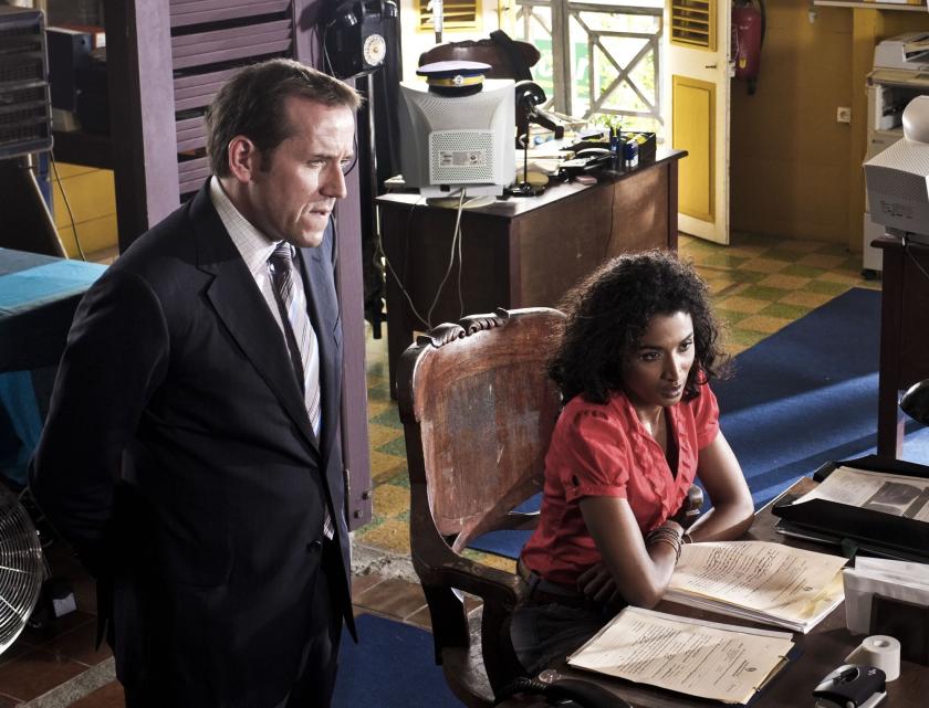 It’s the closing episode, so the “will he? won’t he?” question is back. Meaning, will Richard leave the Caribbean island paradise of Saint-Marie that fate sent him to police, despite an inability to dress down from suit and tie, and what seems a pathological aversion to sand? Clinching the latest case in which another dodgy white male gets his not very grisly come-uppance from someone in his immediate circle, Poole escorts one of the perpetrators back to Britain to assist investigations in a fraud case (the only hint of funny money doings down in this part of the world).