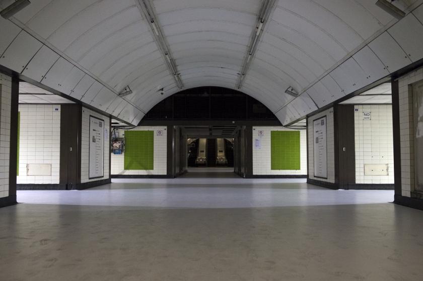 The occasional whisper of oud escaped to mix with the foul smells of one of London’s filthiest stationWith the heart of the event in Westminster, a number of the installations were located around Trafalgar Square, and seemed to absorb and react to the sense of crisis in the air. In the crowded ticket hall at Charing Cross Underground station, as a group of us were issued with fluorescent green wristbands and numbered stickers, I wondered what sort of subterranean nightmare was about to unfold. Tube stations, so often the focus of anxiety about terrorist attacks in the city, seem synonymous with threat.