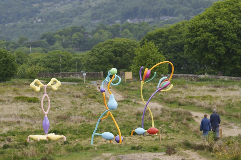 Botanical forms, lurid and bright, now tower above a footpath on a moor otherwise famed for darkness and frankly terrible weather. But the trio of 5m-high contemporary sculptures grow in place here, drawing life from limestone soil. These metallic buds, blooms and supersize tubers reflect a deep, tropical past that predates the very English landscape we now associate with this part of the world.