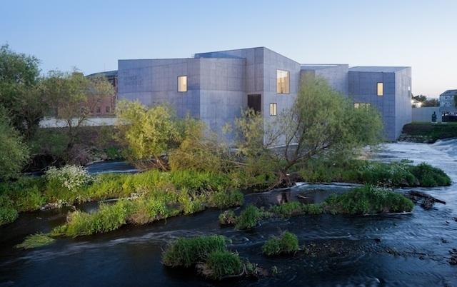 Chipperfield’s style is apparent in both buildings: a series of boxes with sloping rooves stands beside water. But whereas Turner Contemporary doesn’t fully engage with the sea, the Hepworth Wakefield performs a vital function as part of the town’s flood defences, since the River Calder which flows past its walls often breaches its banks.