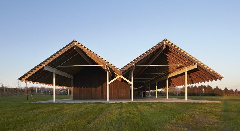 Architects Jacques Herzog and Pierre de Meuron, who also designed Tate Modern and the Beijing Olympic Stadium, started out with a different design – a complex of low pavilions connected by paths, costing $80 million – but the 2008 financial crash meant cutting back the budget to $26 million, and this huge, simple building – actually two joined gabled structures - in the middle of a meadow of grasses and wildflowers is the result. The pale roofs are made of corrugated metal, the rest is concrete and glass, with lots of barn-like wooden beams and trusses in the enormously high ceilings of the 10 connected, white-walled galleries.