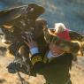 Bell examines Aishopan’s warm, close relationship with her father Nurgaiv (pictured above) in tender detail. He’s an eagle hunter himself, with generations of tradition behind him, and entirely supportive of his daughter’s seemingly natural talent without being pushy. Their closeness emerges most touchingly – and dramatically – in the film’s pivotal eaglet-stealing scene, where Aishopan dangles precariously off a mountainside from a rope wrapped equally precariously around her father’s body, in order to snare what becomes her hunting bird.