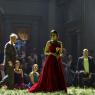 Liberated from Pushkin’s salons, ballrooms and bedrooms, Barrie Kosky’s Eugene Onegin bursts out into nature. Tatyana and Olga lounge in the long grass stealing heavy fingerfuls of jam straight from the jar; party-guests run through the trees with flaming torches, dancing wildly, barefoot; after the harvest groups gather on the lawn with picnics and games. This is a world apart, the hot, hazy, endless summer of first love – an intense, but unreliable memory.