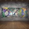 Flashes of intense colour pulse rhythmically across the piece, contrasting with delicate washes and pools of watery pigment that seem to quiver plumply, set to run uncontrollably at any moment. Lines drawn fast and bold describe four figures, while more tentative, carefully made marks barely delineate a foot, and a bird in a cage.