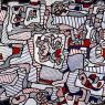 A Bigger Splash... opens with Hans Namuth’s famous 1951 film of Jackson Pollock balletically dripping, flicking and pouring paint onto the canvas at his feet. Beneath the screen a long, scroll-like painting by Pollock lies on the gallery floor. The arrangement implies that this could be the painting the artist is creating on film while, subliminally, another message is being conveyed. The screen has pride of place, so all eyes are on the heroic artist; he is of prime importance and the work is perceived as a byproduct of his creative drive.