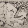 David Jones’ black and white drypoint – a drawing made by incising lines on a copper plate with a diamond-tipped needle and then printing from the plate – is a view of the nativity which is fresh, full of wonder and a highly intelligent naïveté. It shows all the sophistication of an artist who has looked at the art of the past but is also fully aware of modernism’s confusions of perspective, able to deploy them even when depicting recognisable scenes.