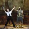 Flying masonry put the Apollo in the headlines late last year when part of the theatre’s ceiling collapsed; now an airborne vampire and an impressive refurbishment give it new life. A cyclorama of dark tree branches and cloud-scudded skies covers the ongoing repair work overhead.