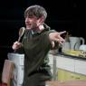 This play has a deliberately evocative title: not only does it suggest overabundance (“everything but the kitchen sink”), but also a whole genre of playwriting (Kitchen Sink Drama). At the same time, the kitchen is the heart of family life. In fact, the title also has a more literal meaning: with a plot involving a blocked plughole, Tom Wells’s new play, which opened last night, gives us a chance to see how this venue’s much-lauded new premises suit the small family dramas that worked so well in its previous location.