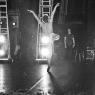 At first the machines are in control. A crane drags the inert body of a woman across the floor, lifts her up and leaves her dangling from the waist. A man follows, dragged by one foot and suspended upside down. The two bodies rise and fall or swing round in a duet horribly reminiscent of carcasses hanging in an abattoir.