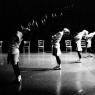 A white kite flies high in black space, trembling, eagerly poised on a wind that shushes almost inaudibly. A man wearing black enters below, and in a low scoop of light prepares slowly in t'ai chi fashion with the calm of a ritual, making great black shadows with his arms and precisely angled legs. Then a small figure sheathed in black bodysuit, faceless, depersonalised, scuttles on and glues its feet to the man’s like a second black shadow. From then on every move the man makes is quadruplicated not only by his shadow but by his doppelgänger and its own shadow.