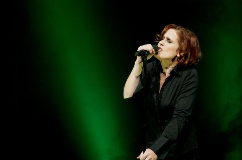 The best example was “Filigree”, the story of an epiphany Moyet had received while sitting in an arthouse cinema in Amsterdam. Before Alf performed it, wrapped moodily around her microphone (pictured right), she explained how the experience had led her to accept that short, powerful moments of happiness, despite being transient, might be enough for her. Presumably such episodes, and the ability to process the experiences of middle age so poetically, also provide Moyet with her forward momentum. Despite all the Eighties music, this never felt like a nostalgic evening.
