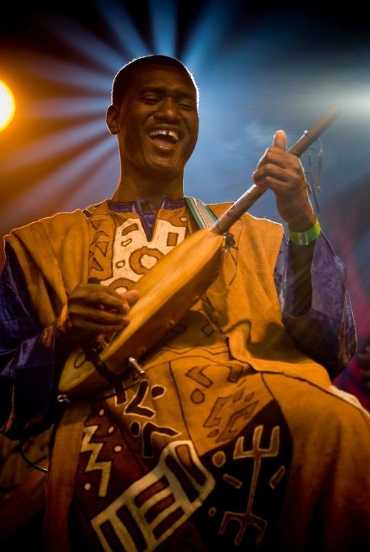 Many press releases from now up until Christmas are sure to begin with the words, “Fresh from wowing the crowds at Glastonbury…”, but that’s not going to stop me using them now with reference to this great Malian band. This is because we world music journalists feel a particular swell of pride when one of our beloved acts breaks through the Womad glass ceiling and gets to bring their complex polyrhythms and weird-looking instruments to the mainstream music fan. And what’s more, in the case of Ngoni ba, I’m sure that they genuinely did “wow” that sea of sun-burnt punters, because having seen them at least half a dozen times I’ve yet to witness an audience that hasn’t been pulled into their vortex of duelling ngonis, thumped and slapped calabash, and sweet soaring vocals.