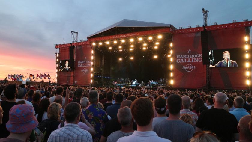 "Queen Elizabeth Olympic Park" is a wonderfully grand name for the venue for this summer's Hard Rock Calling festival, but the reality doesn't quite match up. Rather than basking in the glory (and shiny new stadium architecture) of Mo and Jessica's triumphs from last summer, music fans found themselves a few hundred yards away on a drab swathe of stony wasteland, temporarily covered with artificial grass. Still, at least the sun blazed down and they'd got the beer tent sorted, with thirsty punters bundled in and out, several banknotes lighter, at unprecedented speed.