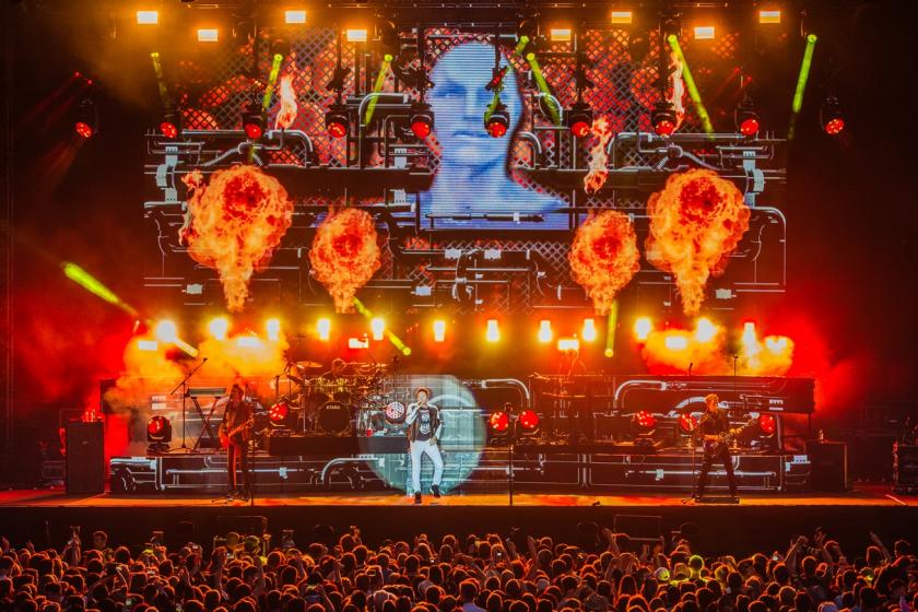 They play newies, opening with the title track of last year’s “Paper Gods” album, as well as including the Nile Rodgers collaboration “Pressure Off” from it. Going back a bit further, 2005’s “Reach Up (For The Sunrise)”, with an interlude of “New Moon on Monday” and a gigantic confetti cannon explosion (pictured above left), is a set highlight.