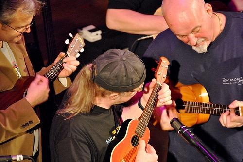 Seeing so many middle aged people losing themselves entirely and unselfconsciously in songs like “The Widow of Westmoreland” or “Danny Jack’s Chase” made me ask myself the question, “have the Fairporters actually found a better way of life?”. And one answer came in the form of Dave Pegg’s introduction to his song “Peggy’s Pub”. At the height of the Sandy Denny era they were all going to get rich, and he was going to buy a pub and retire. But it didn't work out that way and instead he got to travel the world for forty years and have a great time. And boy did he look like he was a having a great time tonight, especially in “Ukulele Central” - three ukuleles, one bass ukulele and a washboard.