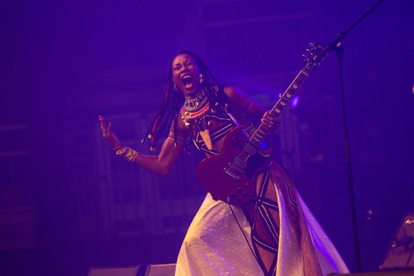 Fatoumata Diawara knows how to please: with a winning and innocent smile, she wins the audience over in a matter of seconds. She has a vocal style all of her own: in her first song, “Don Do”, a quiet and meditative prelude to the boisterous show that follows, she seduces with sensual textures and a slight rasp unique among West African women singers, and which owes as much to jazz and gospel as to the traditions of her musically-rich country.