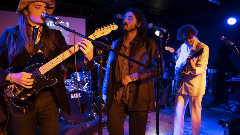 Next up is Welsh outfit CVC at Latest Music Bar. Their name may not be the most memorable, but they turn out to be a phenomenon. They hail from Church Village, 10 miles northwest of Cardiff, and CVC presumably stands for Church Village Collective or similar rather than being a reference to credit card verification. Word is out. Latest’s basement venue area is backed, and there are queues down the road, but we arrive before they start.