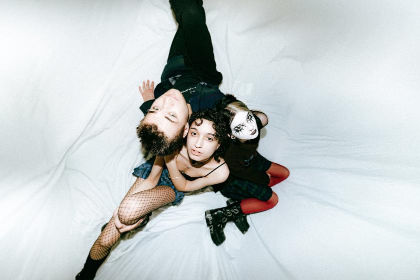 Bassist Clown Baby has the make-up to match their name, wearing a Black Flag tee, leather trousers, their hair sprayed out but with a top-knot. Although I saw them laughing and joking with friends in the crowd earlier, onstage they wear a pouting sullen expression which works a treat. Both Parnell and Clown Baby exude gothy vibes but drummer Louis Relf is dressed casual, in glasses, which fall off at one point, to be retrieved by stage crew. He’s impressively skilled, providing rhythmic foundations on which the trio build their primitive-styled rock’n’roll.