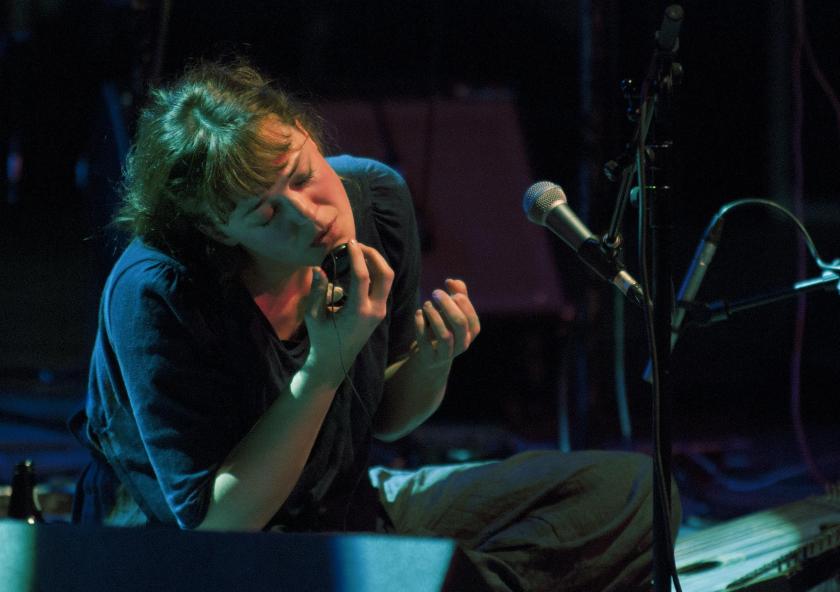 Mari Kvien Brunvoll - Norwegian improviser, singer and composer - enters the Kings Place stage more like a pianist's page-turner than the night's sole performer, and sits cross-legged at her pedals. Dressed in a neutral dark grey, she doesn't seek applause so instead we are left silently watching her adjust a microphone and untie a little red book. Her methodical calm creates a patient audience, intrigued enough to find her subtle actions compelling.