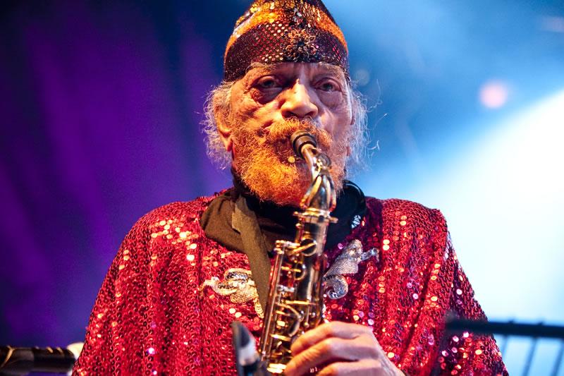 The Arkestra were, as usual, dressed like pensioners performing in a panto. But their music was deadly serious and the 12-piece ensemble played superbly, ranging from melodic big band ballads to free jazz workouts to electronic skronk. Ginger-bearded Allen has remarkable drive and energy – and continues to play a highly distinctive sax – while the Arkestra (combining veterans and several more youthful players) maintained a formidable discipline for a band who are encouraged to solo. The psychedelic lighting added a superb interplay and footage of the late Ra both paid homage and suggested how he watches over his vision as it continues forth. The Arkestra appeared to enjoy the Barbican’s magnificent sound and lighting with musicians breaking into spontaneous dance and having a very fine time indeed. What a delight this performance was.